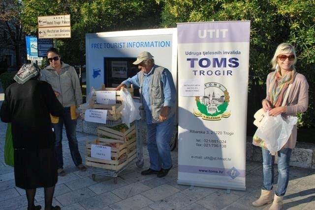 U petak 18.10. djelatnici Udruge TOMS su prodavali jabuke u sklopu humanitarne akcije “Male ruke zajedništva-Dan jabuka” u organizaciji osnovne škole”prof Filip Lukas” iz Kaštel Starog na trogirskom malom mostu. Građani Grada Trogira su i prilikom ove akcije pokazali humanost te se 15-etak kašeta jabuka prodalo u otprilike sat vremena, od čega su 4 pune kašete kupile trogirske ugostiteljice gospođe Iva Kurtović i Jasminka Vranješ te ih donirale u Dom za psihički bolesne odrasle osobe Trogir. Jabuke su stigle iz Slavonije, Klastera i prodavane su po simboličnoj cijeni od 1 kune po 1 jabuci.