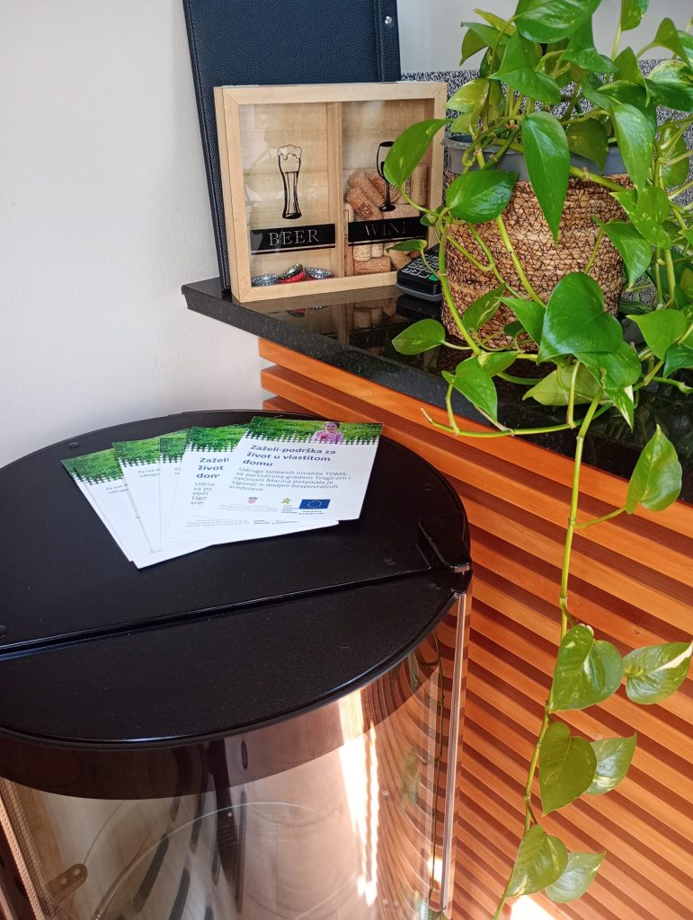 Udruga tjelesnih invalida TOMS, u partnerstvu s Gradom Trogirom, Općinom Marina i Općinom Seget, provodi projekt pomoći u kući za starije osobe i osobe s invaliditetom pod nazivom “Zaželi – podrška za život u vlastitom domu”. Projekt se provodi u okviru poziva “Zaželi – prevencija institucionalizacije” te ima za cilj omogućiti korisnicima što kvalitetniji i sigurniji život u vlastitom domu uz svakodnevnu podršku zaposlenih radnica.